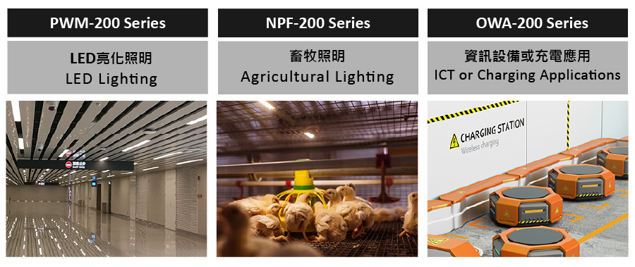 本次新上市三款200W系列机型皆为双重绝缘保护的Class-II电源,可针对不同领域及应用搭配使用。PWM-200系列,以恒压输出应用为主,提供给LED灯带亮化应用,并符合IEEE-1789规范要求,无视觉频闪问题。NPF-200系列则采C.C+C.V 设计方式,可提供任何LED灯带或恒流应用的灯具搭配使用,此外针对调光版也增加NPF-200V系列,将调光功能改成线性式恒压调光,适合搭配畜牧类照明应用,解决传统PWM恒压调光频率太低容易造成频闪的问题。除了具备上述相关特色功能,PWM-200与NPF-200系列皆符合EN61347、GB19510及UL8750照明类安规认证。