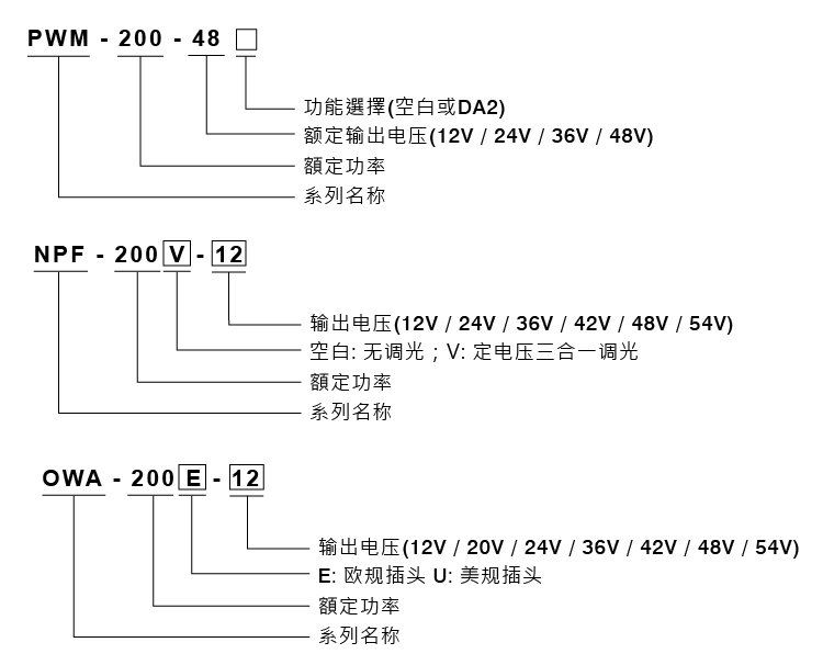 NPF/PWM/OWA-200系列: 200W Class II & IP67电源供应器